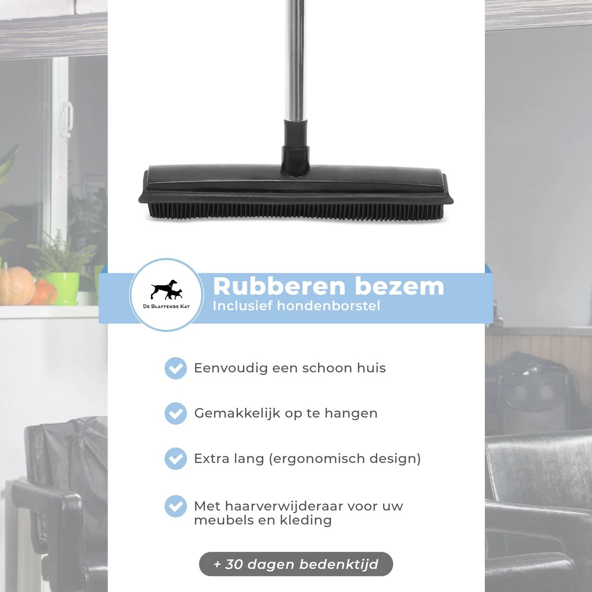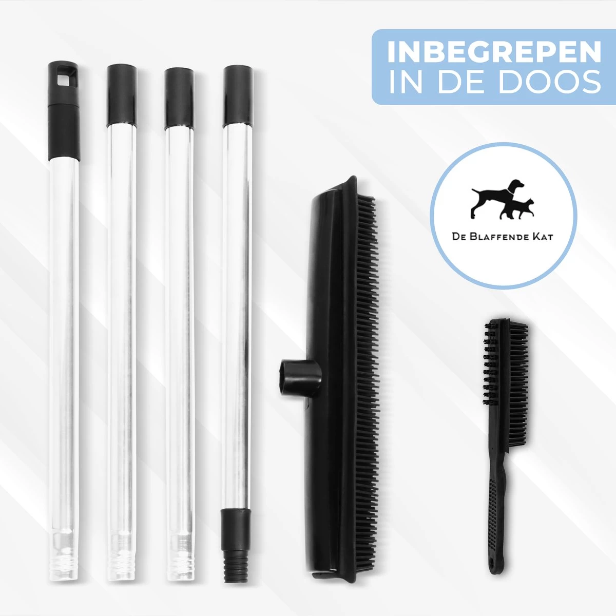 2 In 1 Rubberen Bezem – Bezem Binnen & Buiten – Vloerwisser Met Steel – Met Huisdierhaar Verwijderaar – Vloertrekker – Veger – Extra Lang 160cm