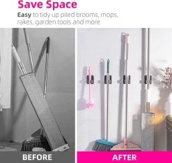 BOTC Bezemhouder – 4 Stuks – RVS – Bezem Ophangsysteem – Bezem Houder – Tuingereedschap – Zwart