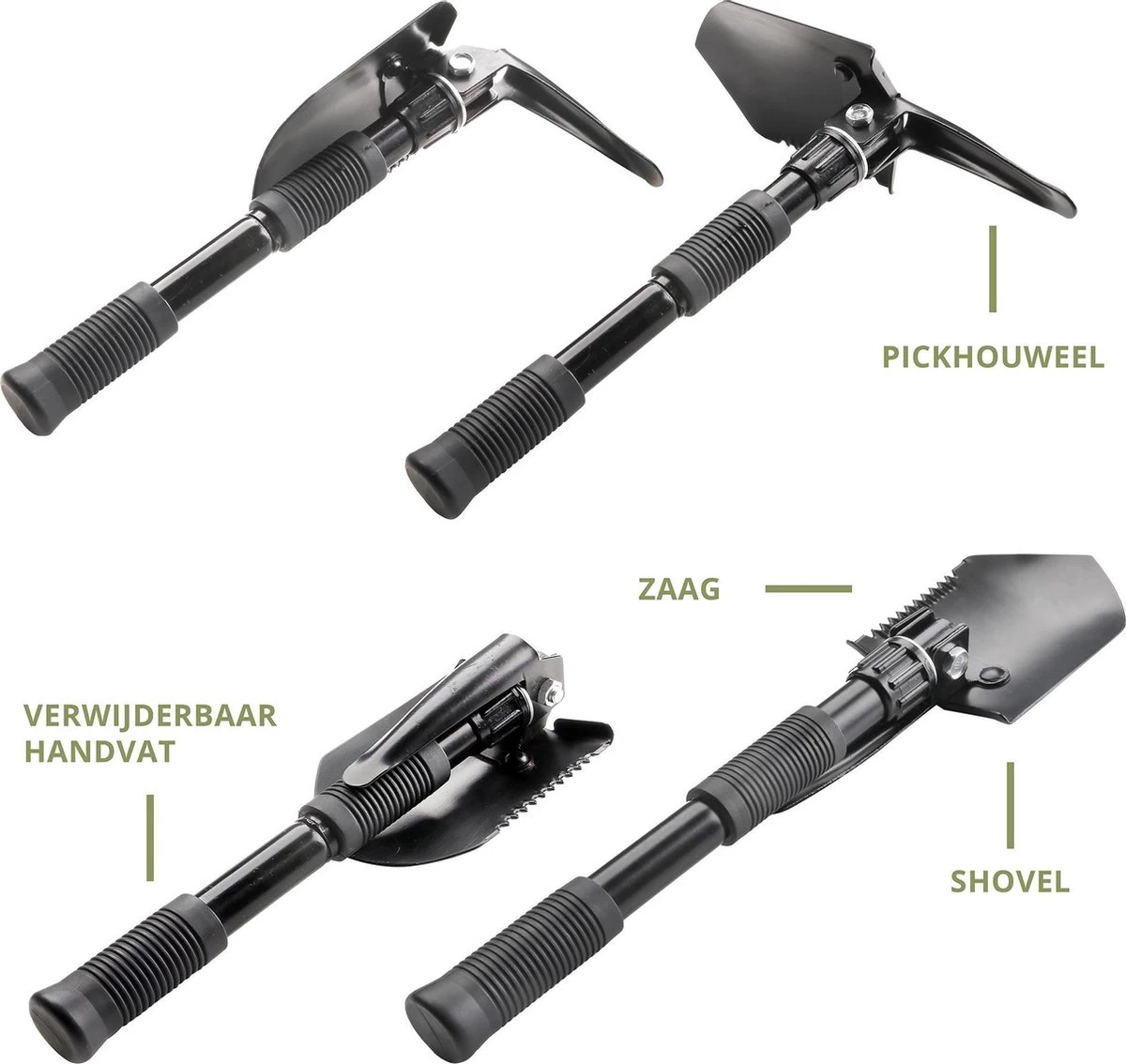 MacGyver Pikhouweelset En Schep – Opvouwbaar Pioniersschep – Zaag – Veldschep Inklapbaar – IJzer
