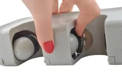 β Met flexibele balklemmen en rubberen stop – past zich automatisch aan de dikte van de steel.