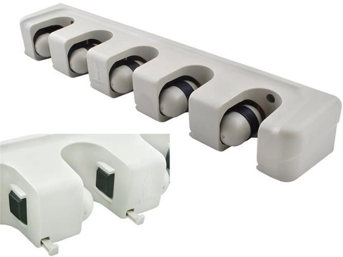 Met dit handige ophangsysteem kunt u netjes en overzichtelijk uw bezems en (tuin_gereedschap ophangen in de garage, schuur, huis en kelder. Door uw gereedschap netjes op te bergen houdt u uw spullen eenvoudig bij elkaar, blijft uw gereedschap in conditie en voorkomt u ongelukken. De 5 balklemmen en rubberen stoppers passen zichzelf automatisch aan aan de dikte van de steel, waardoor deze altijd stevig en solide zal blijven hangen Tevens beschikt deze wandhouder over 6 handige haakjes waar u sleutels, klein handgereedschap als inbussleutels en andere accesoires aan kunt hangen.