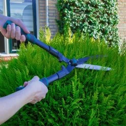 - Heggenschaar: 57cm lang met 22,9cm golvende bladen, geschikt voor het knippen van een heg, heester of struik met een maximale tak diameter van Ø 6mm. De golvende bladen houden het te snijden materiaal in het snijgebied en voorkomt dat het wegglijdt. De snijbladen zorgen voor nauwkeurige en zuivere sneden en dat maakt de heggenschaar geschikt voor het snijden van vers hout.