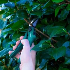 - Snoeischaar: 20,5cm lang met een 5cm papegaaienbek, geschikt voor het knippen van bloemen en jonge scheuten met een maximale tak diameter van Ø 15mm. De papegaaienbek (bladen glijden over elkaar) zorgt voor nauwkeurige en zuivere sneden en dat maakt de snoeischaar geschikt voor het snijden van vers hout.