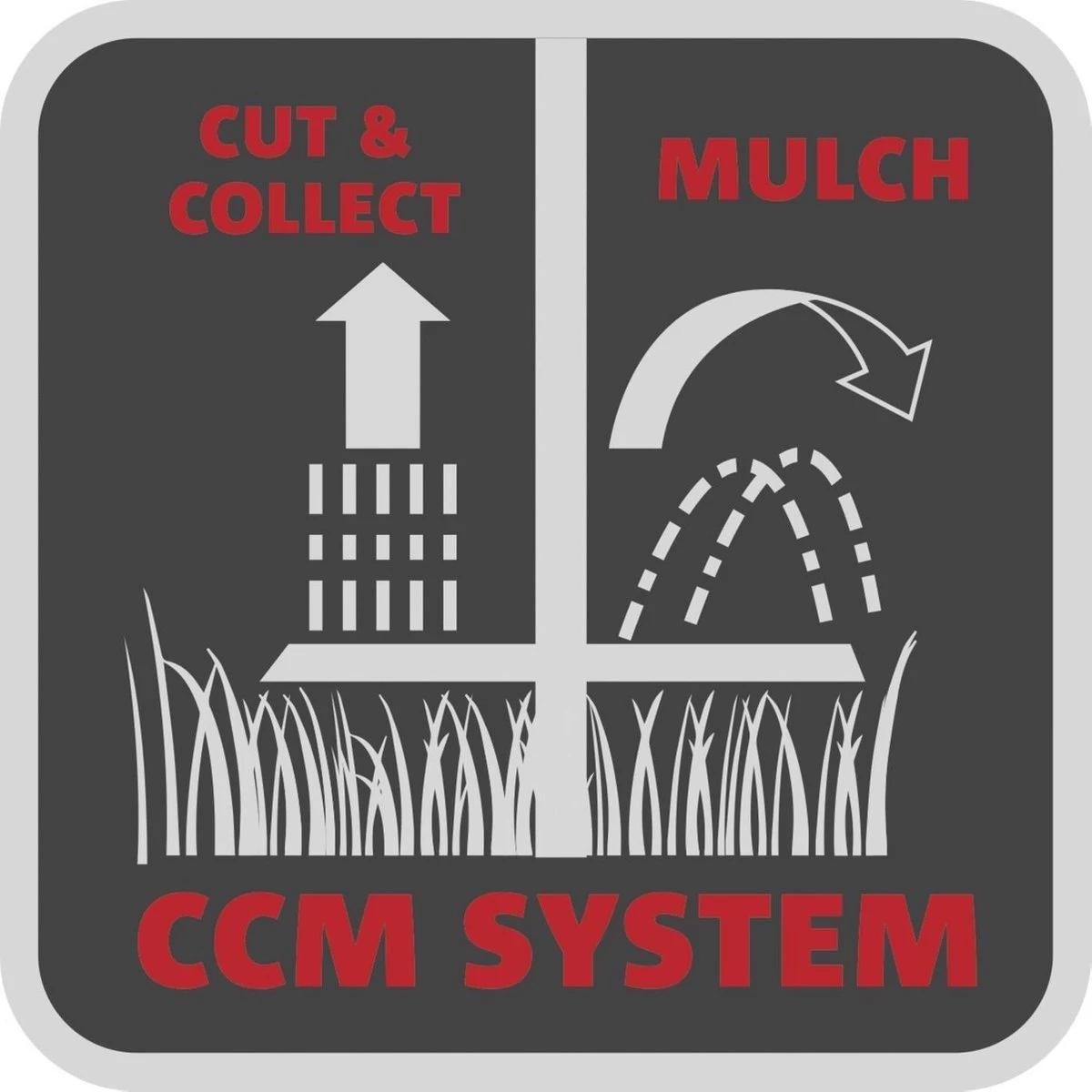• CCM-system: cut, collect, mulch (maaien, verzamelen, mulchen)